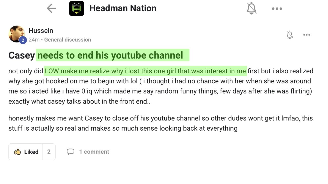 - Headman Nation COMMUNITY - The best network to grow together with me (Casey) and EVERY MAN as we grow this movement together.